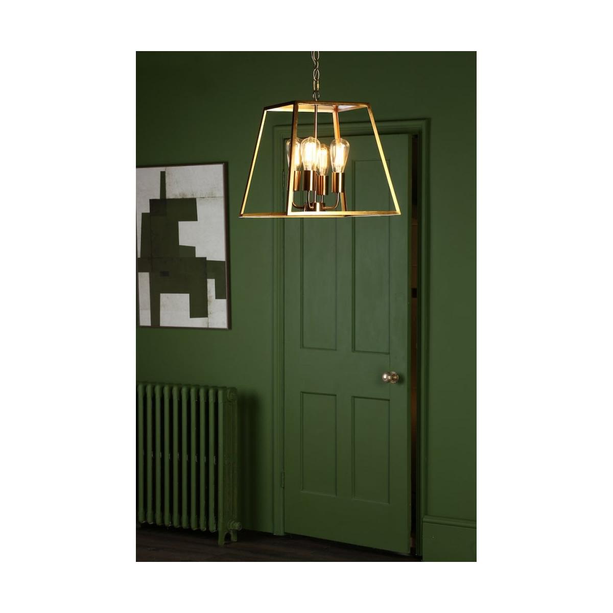 The Academy 4 Light Lantern is an elegantly tapered square lantern-style pendant in a natural brass finish (no glass). Including a mirrored plate in the top to create a floating illusion, this fitting would add a unique touch to any contemporary decor. Perfectly suited for grand hallways, contemporary kitchens or minimalist bedrooms.