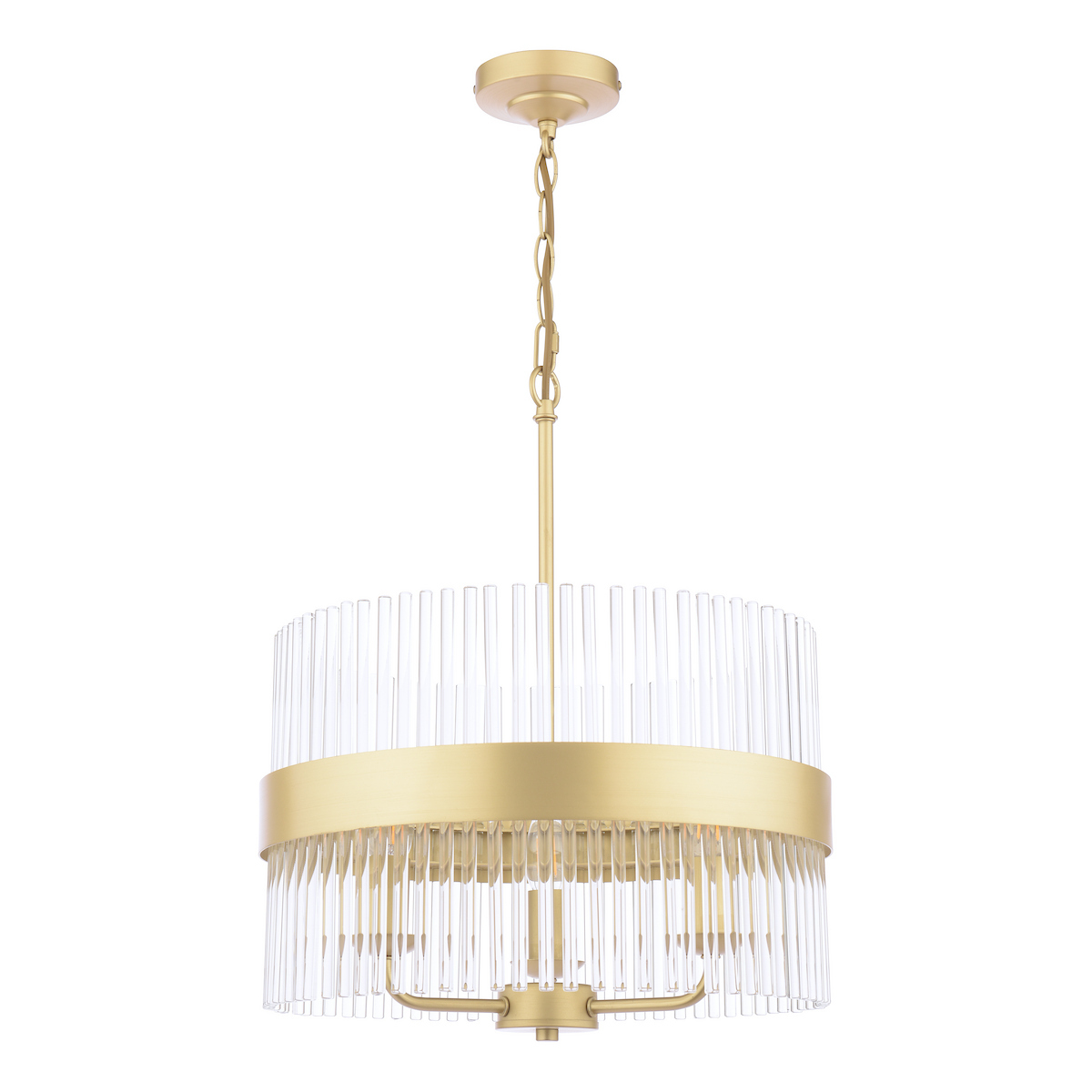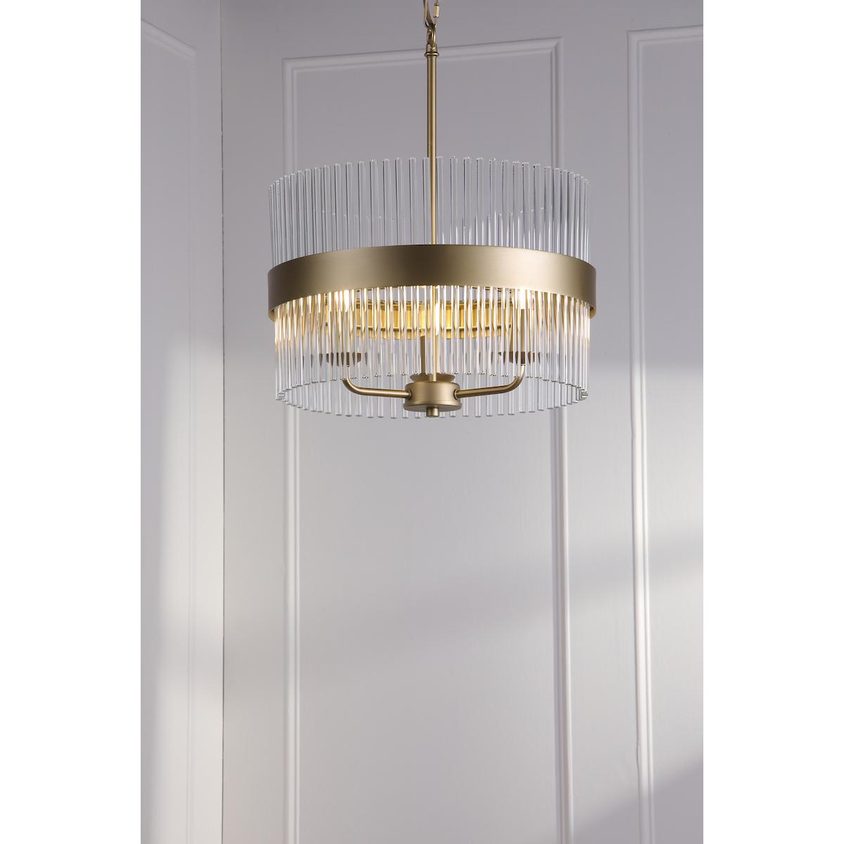 The Alexa pendant light is a stylish and eye-catching design feature. Clean vertical glass elements create an airy and rhythmic appearance, while brass-tone details add warmth and a luxurious accent.This pendant is ideal for placement above a dining table, in a living room, or in a spacious hallway, where it serves both as a functional light source and a striking interior focal point.