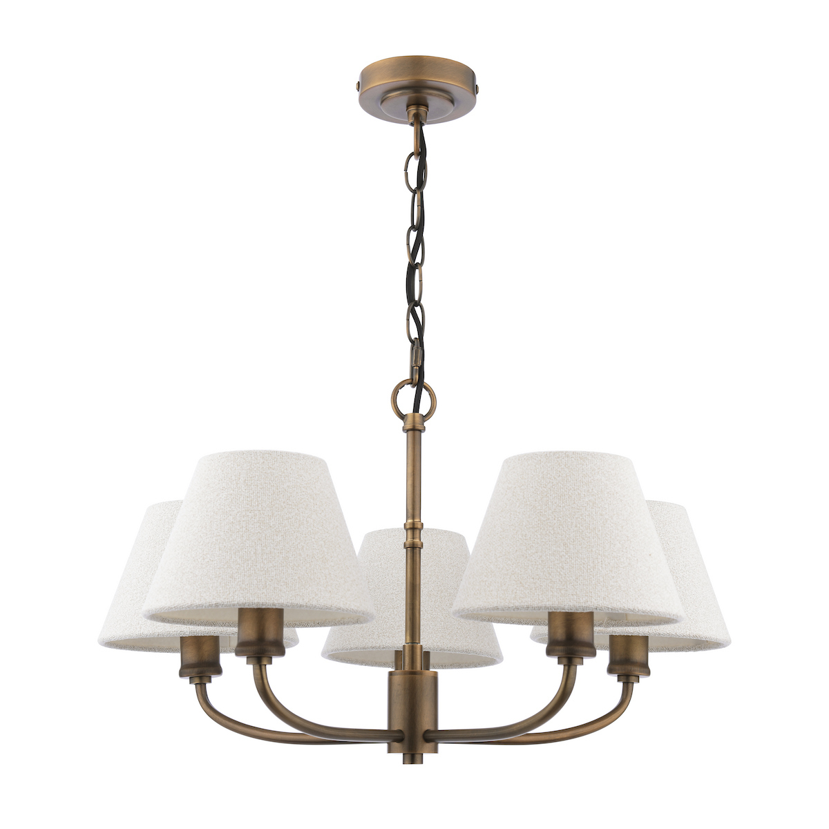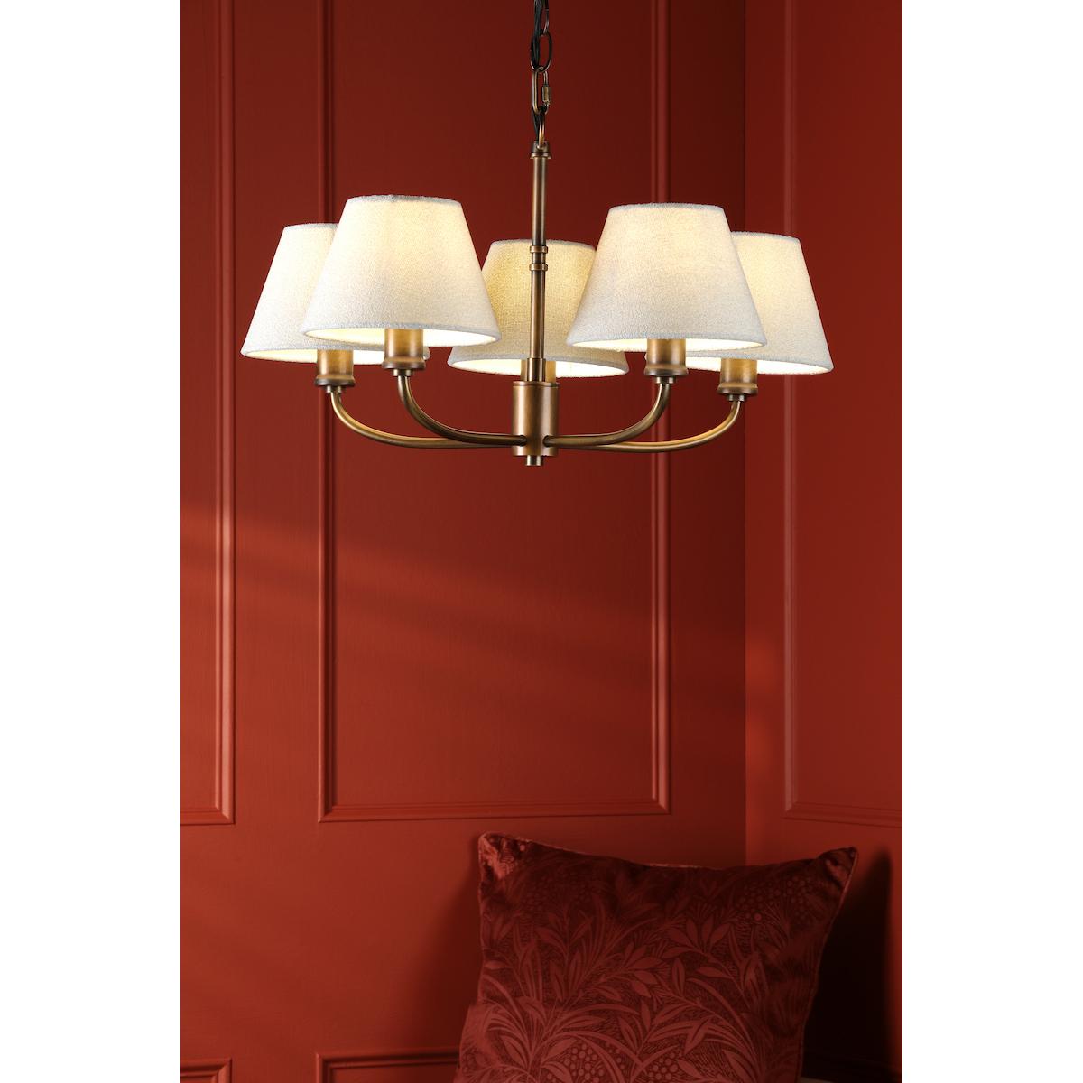 Elevate your living room or bedroom with the Denston 5 Light Chandelier. This ceiling light adds layers of homely luxury with its textured boucle fabric shades in warm cream cotton. The antique bronze finish offers a traditional, timeless appeal, and with an adjustable height, you can customise this chandelier to suit any space. Lower it for a stylish statement over the dining table or raise it for a more subtle glow. Pair it with the matching table lamps and floor lamps in the Denston range for a cohesive yet inviting ambience.