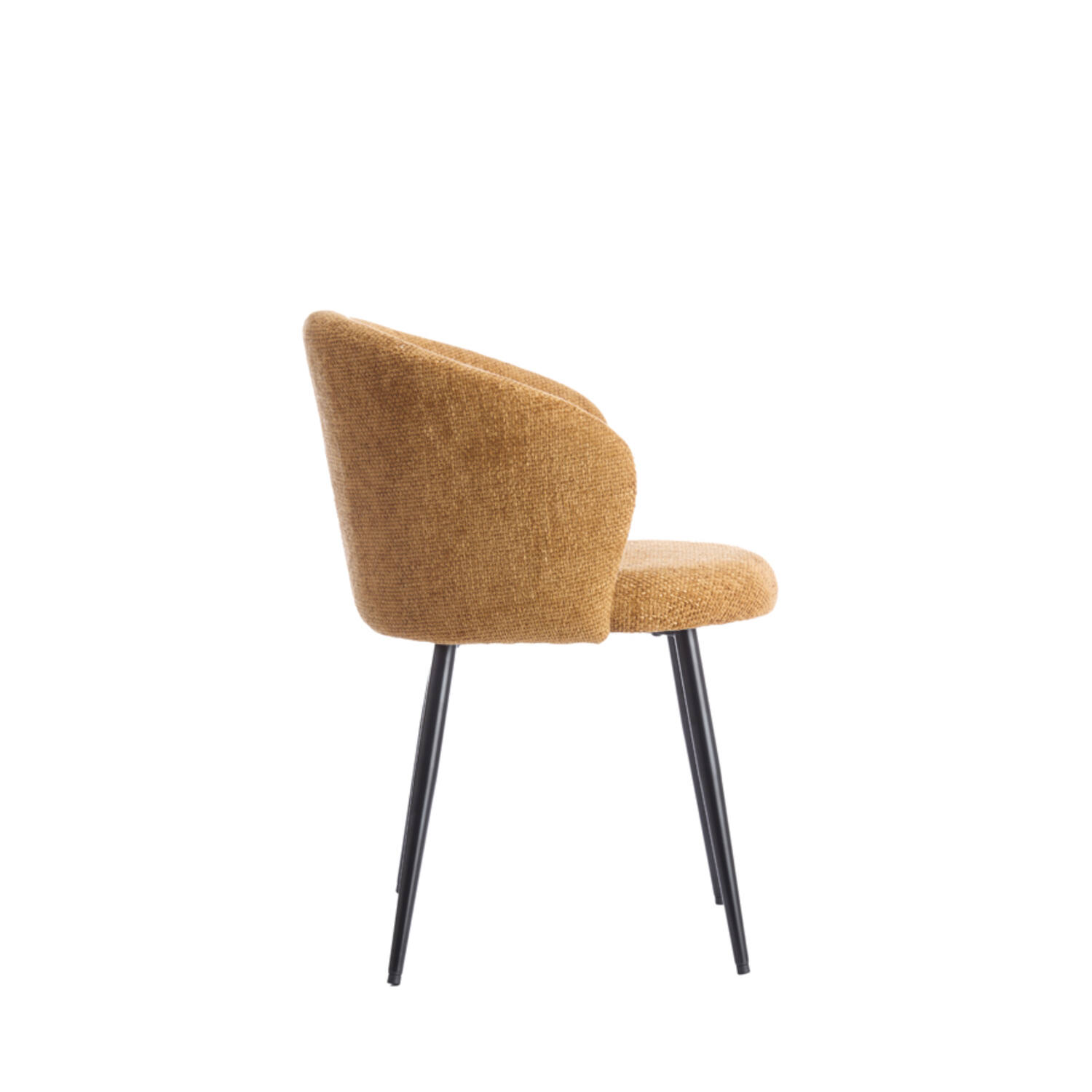 This elegant Radaja dining chair combines timeless design with comfort. The chair has slender matt black legs that give it an airy and modern look. This dining chair fits perfectly into a contemporary interior. The round seat and round back of the stool offer not only style but also comfort, making long dinners a pleasure with these dining chairs. Whether you want to create a formal or a cosy dining space, this dining chair is a versatile choice that effortlessly adapts to different styles.