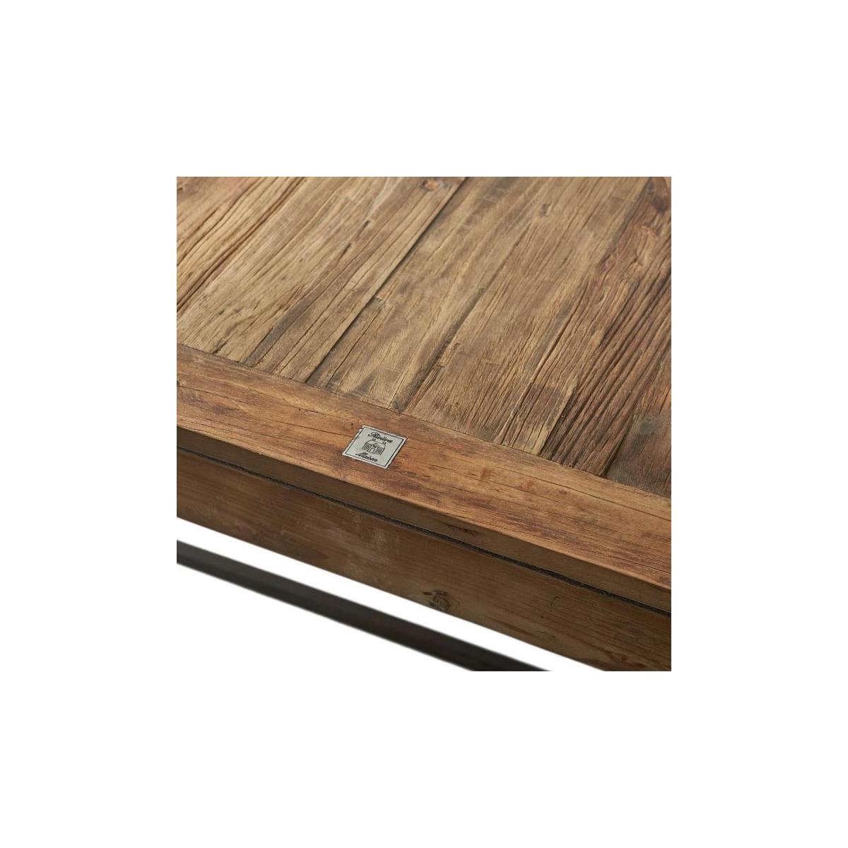 A contemporary dinner table with a robust table top of recycled elm wood and spruce wood. The iron frame gives the table an industrial character. The drawers on the side provide space for table accessories like placemats, coasters and maybe even tablecloths. A lovely addition to the Shelter Island series.