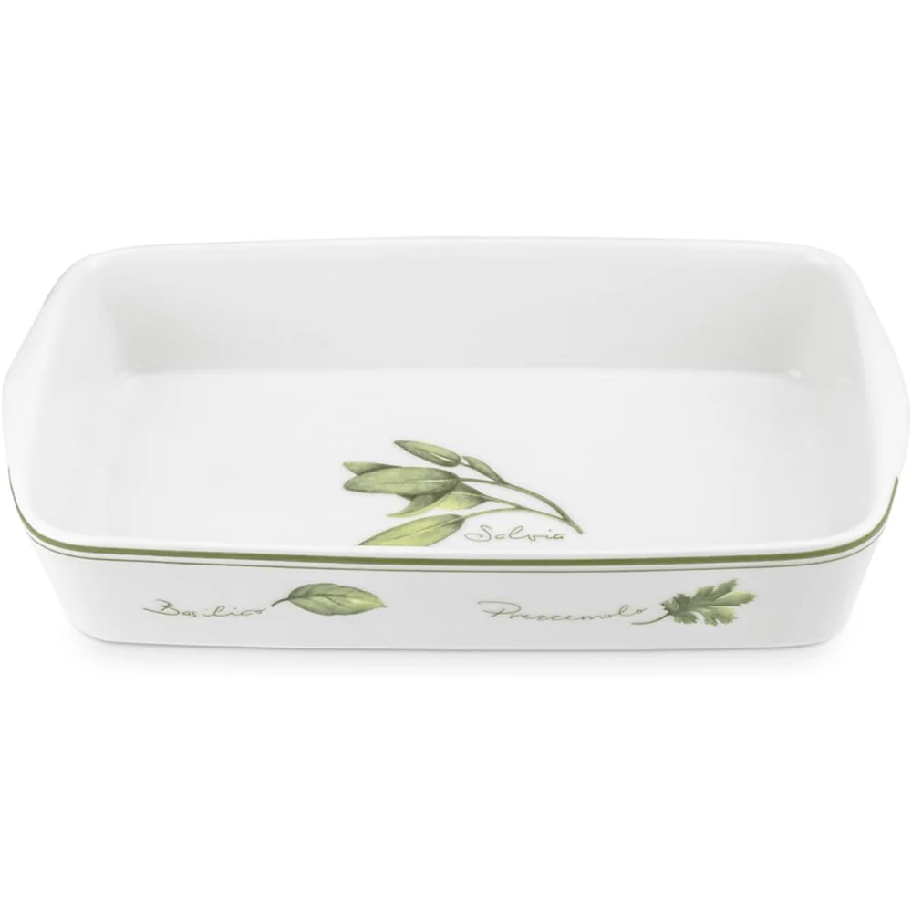 Prepare your favorite dishes in this elegant herb-decorated baking dish! Made from high-quality ceramic, this dish is resistant to high temperatures and is perfect for baking lasagna, casseroles, pastries, or roasted vegetables.
