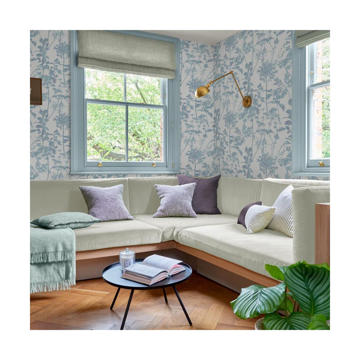 Esther is an organic design, inspired by the wild meadows of Britain, the Breathe colourway has a cotton effect texture running behind the giant umbellifers, characterised by there disk shaped umbels. We love this design paired with our Reecho semi-plan either as a complimentary wallpaper or fabric!