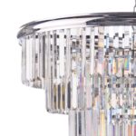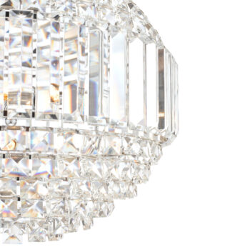 The EULALIA crystal chandelier, is the perfect statement ceiling light for a grand entrance hall, or over a large dining table. With layers and layers of beautiful coffin crystal complemented by a perfectly proportioned top metal band in polished nickel.