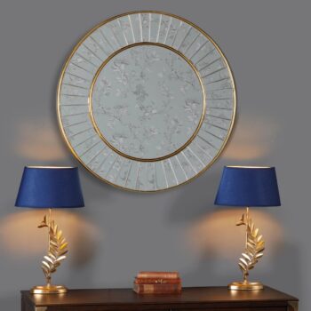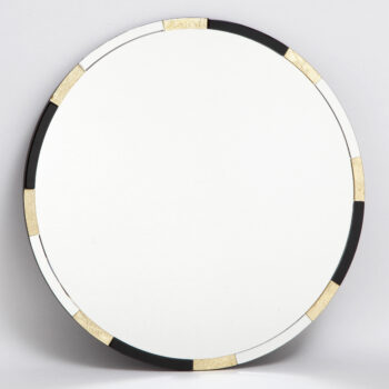 A large rectangular mirror in a Hollywood Regency style with intersecting gilded frames. Can be mounted vertically or horizontally.