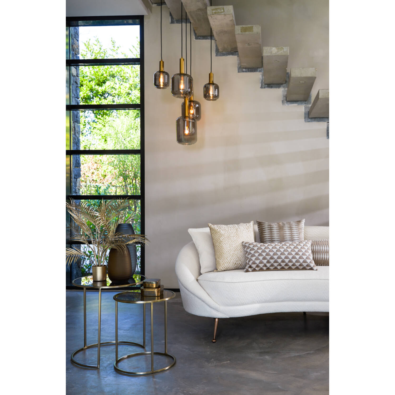 The Lekar pendant light combines contemporary design with a timelessly stylish look. With five shades hanging at different heights, it creates a dynamic and artistic atmosphere that captures attention from every angle.