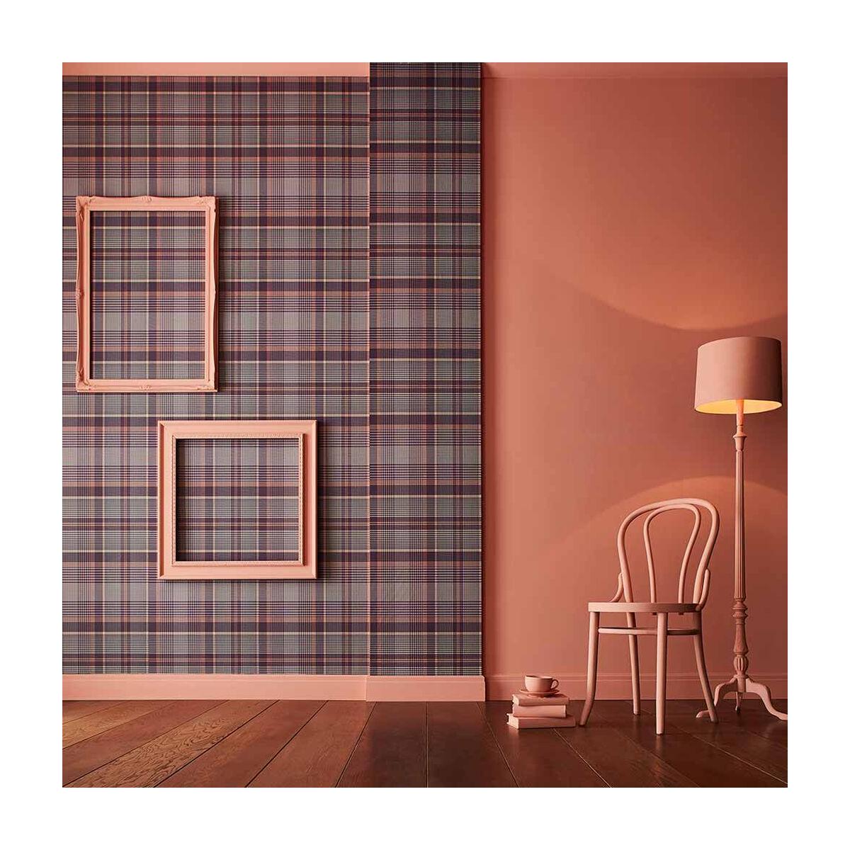 A beautiful colour combination of deep purple, subtle orange and warming neutrals, Heritage Plaid Plum is a contemporary take on a classical tartan design. This modern, eye-catching wallpaper has a beautiful matt paper finish which mimics a fabric, woollen look. Created on a large scale, this elegant plaid design is sure to create a statement.