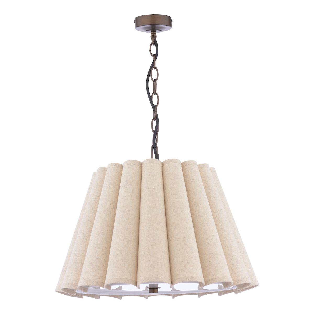Fusing timeless elegance with modern functionality, this  2-light pendant ceiling light casts a warm, ambient glow. Crafted with an antique bronze finish, its vintage-inspired design seamlessly complements traditional and contemporary decor alike. The natural linen shade emits a soft, diffused illumination that fills the space with an inviting radiance.