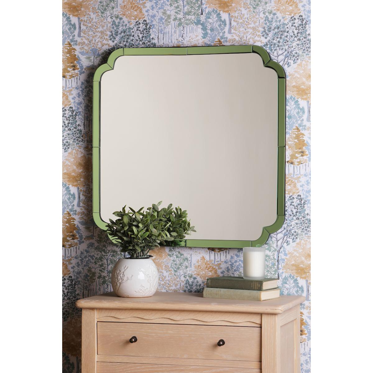 Make a bold, eye-catching statement with the Martham green edge mirror square. Exuding a fashion-forward aesthetic, this gorgeous wall mirror features a striking green-tinted glass edge, resulting in a modern yet vintage-inspired look. Hang it in the entryway to greet guests in style, or let it be the focal point above a living room mantel.
