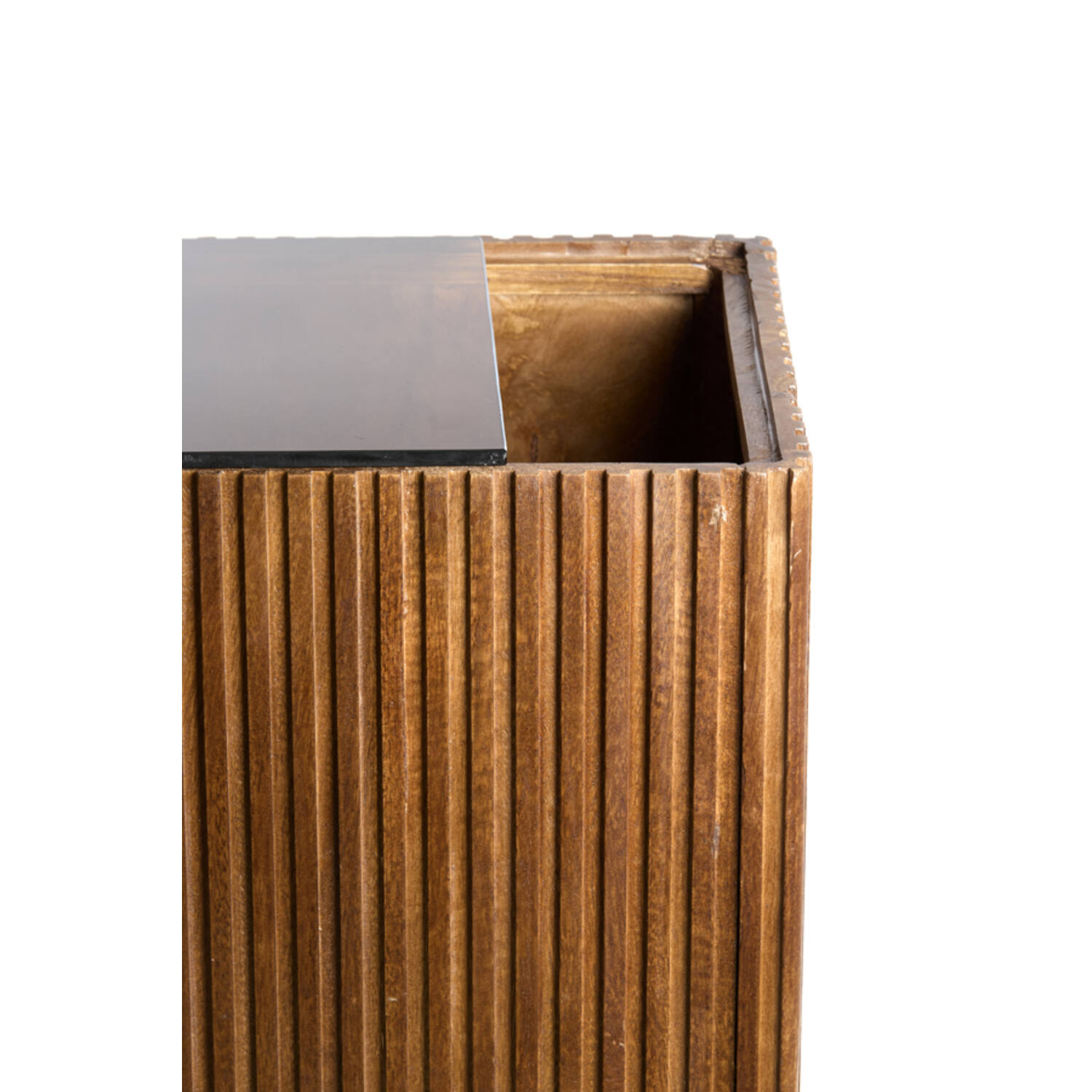 The GATURA pedestal combines the warm beauty of natural wood with a modern design language. Its vertical ribbed structure creates an eye-catching rhythm, while the dark brown tone adds depth and a sense of luxury. Perfectly suited for both contemporary and nature-inspired interiors.