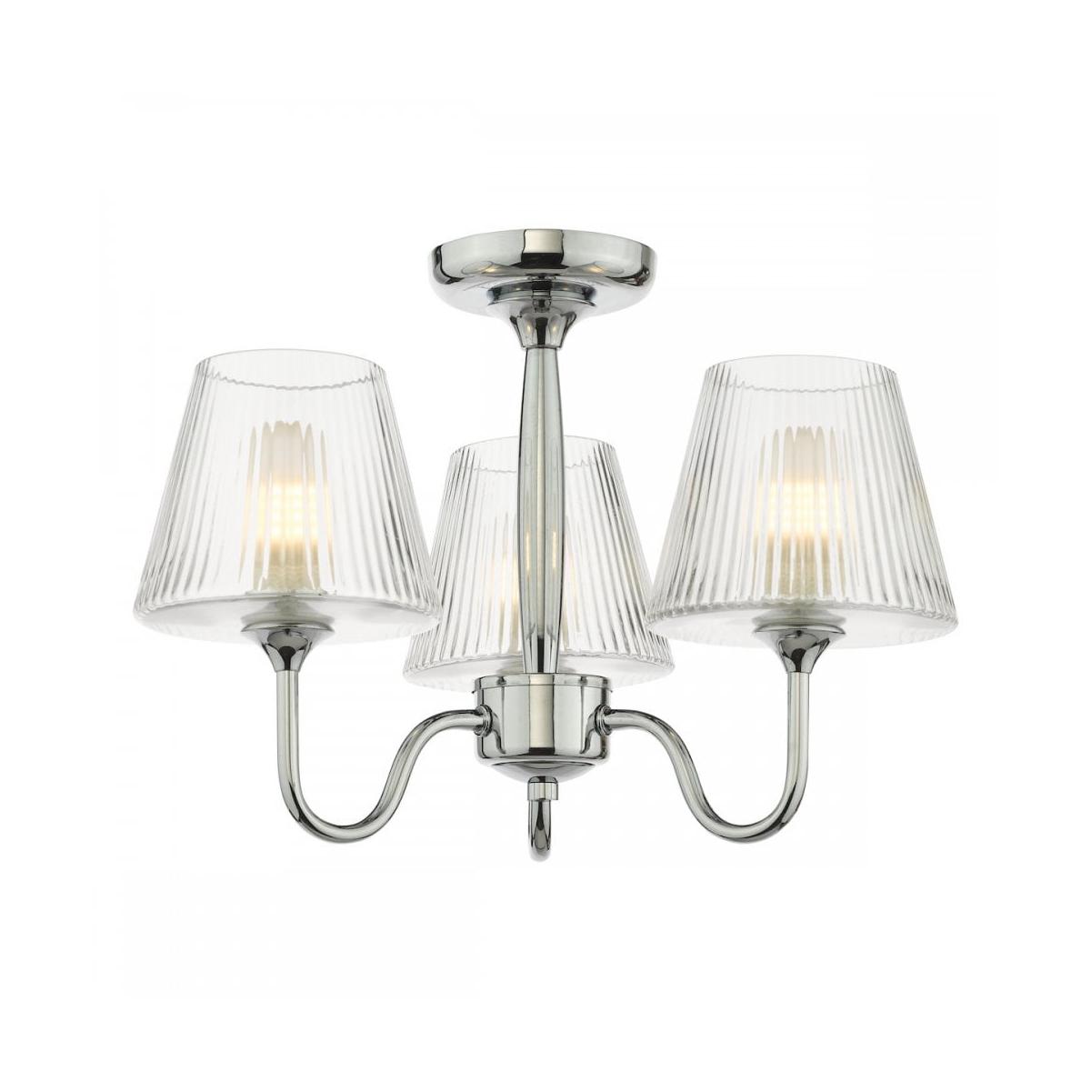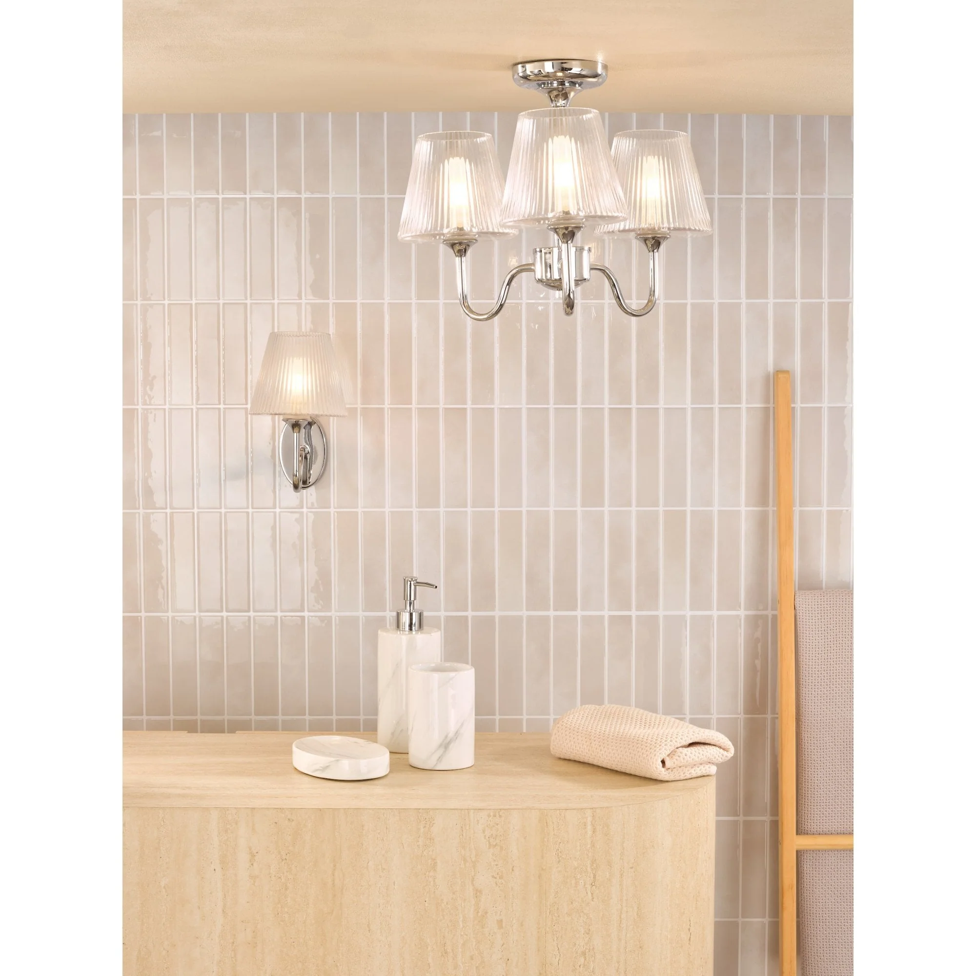 Rimaz 3 Light Bathroom Semi Flush Polished Chrome and Ribbed Glass IP44