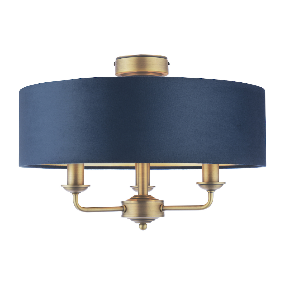 Home Lighting Ceiling lights Sorrento 3 Light Semi-Flush Matt Antique Brass With Blue Shade