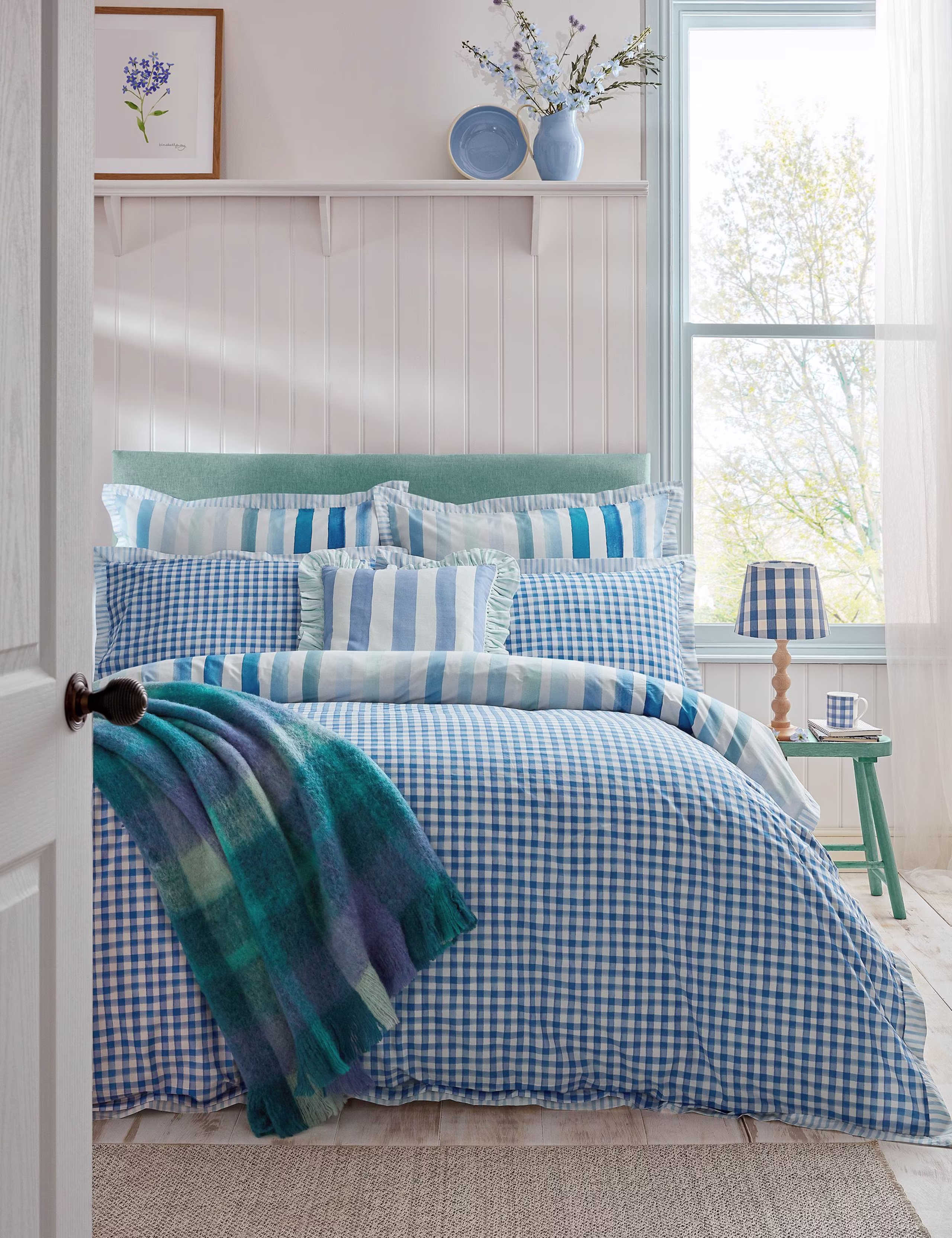 An artistic twist on a timeless classic, the Sunday Stripe duvet set is hand painted in tonal shades of soft, watery blue. The painterly stripes have a relaxed, fluid feel – a fresh, artistic take on the classic pyjama stripe, perfect for capturing the mood of a lazy Sunday morning. Finished with a smart contrast Oxford edge, the design reverses to a watercolour gingham, giving you two beautiful ways to style your bed.