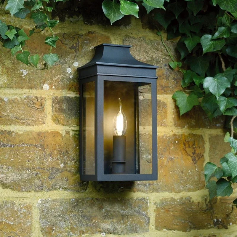 Home Outdoor Lighting Vapour Coach Lantern Outdoor Wall Light Matt Black IP44