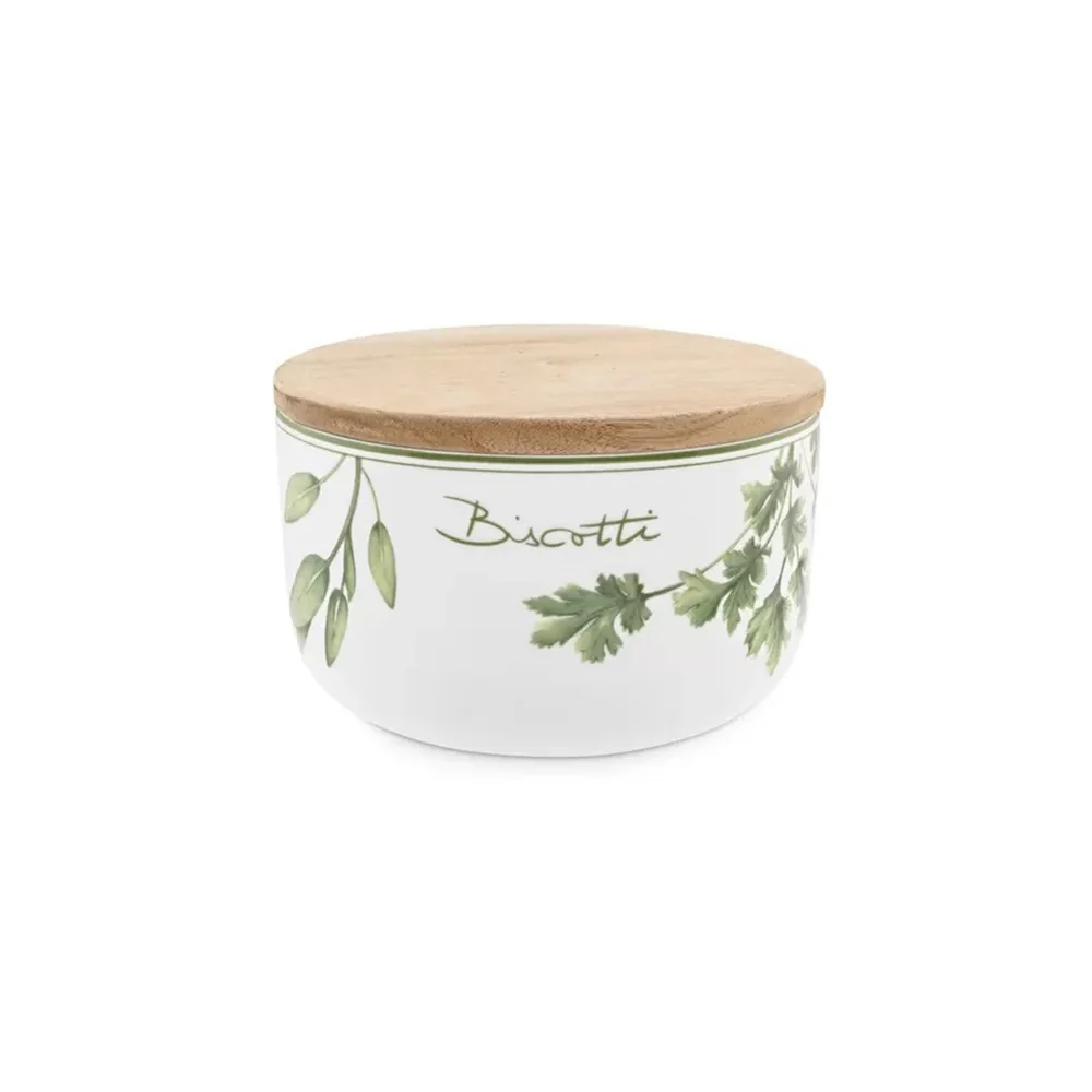 White Porcelain Kitchen Biscuit Jar with Wooden Lid “Coltivia” D20xH12 cm.
