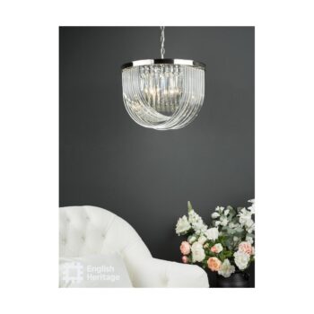 English Heritage Eltham 4 Light Pendant Polished Nickel and Crystal
