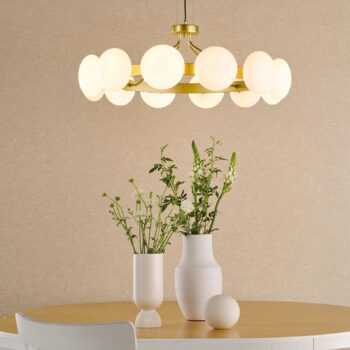 Tauri 12 Light Pendant Matt Gold and Opal Glass