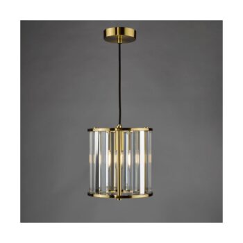 Abrielle Pendant Brushed Bronze and Amber Ribbed Glass