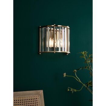 Kiran 2 Light Wall Light Natural Brass and Crystal