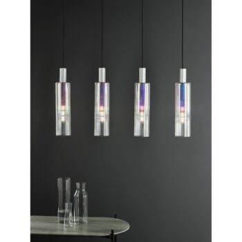 Ruben 4 Light Bar Pendant Satin Silver and Ribbed Iridised Glass