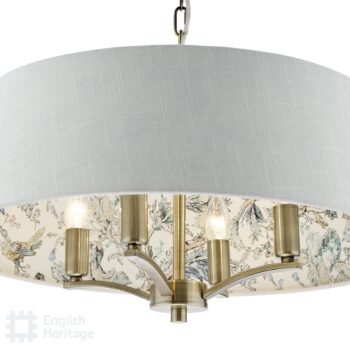 English Heritage Birch 4 Light Shadelier Antique Brass and Taupe With Shade