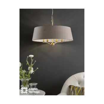 English Heritage Marble Hill 4 Light Shadelier Antique Brass and Taupe With Shade