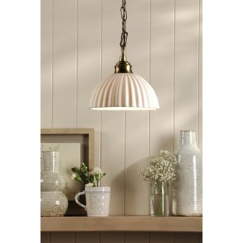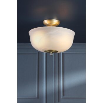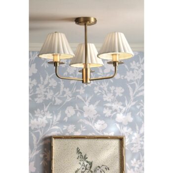 Mixbury 3 Light Semi-Flush Matt Antique Brass and White Ceramic
