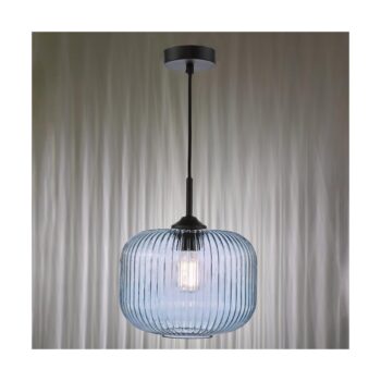 Demarius Pendant Matt Black and Blue Ribbed Glass