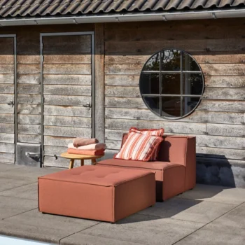 Bellagio Outdoor Footstool, sunbrella heritage, source padouk
