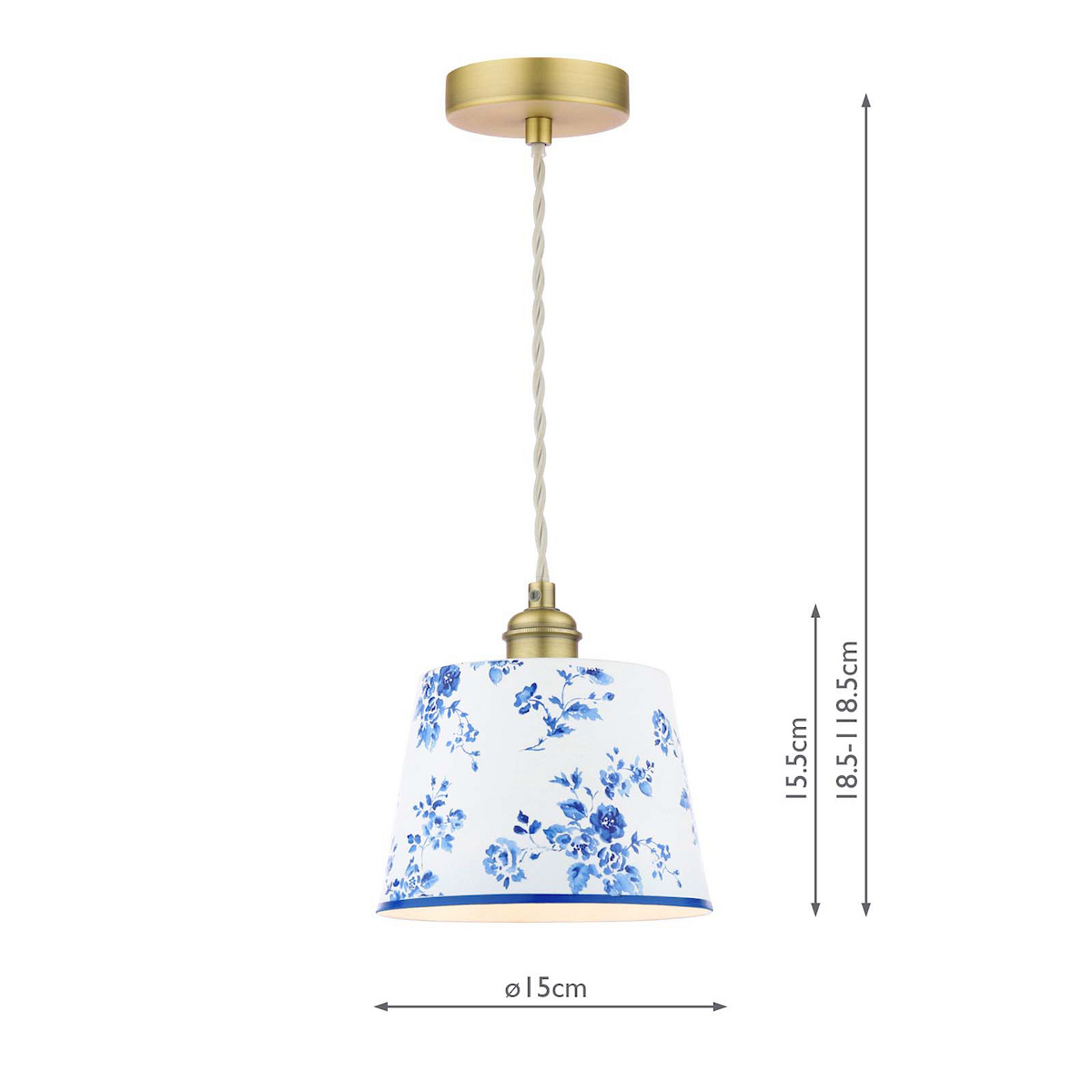 China Rose on dekoratiivne 1-valgustiga rippvalgusti, mis sobib hästi väiksematesse ruumidesse või kohtadesse, kus on vaja visuaalset aktsenti. Metallist varju kaunistab klassikaline lillemuster ning matt sinine viimistlus, mida täiendavad antiikmessingu toonis detailid.1 x 25w max SES CNDL