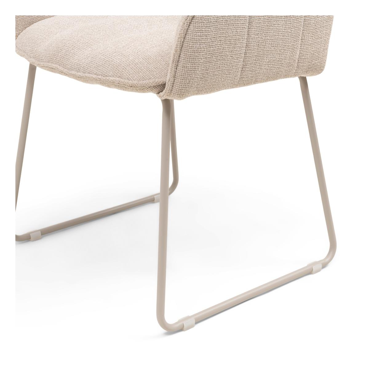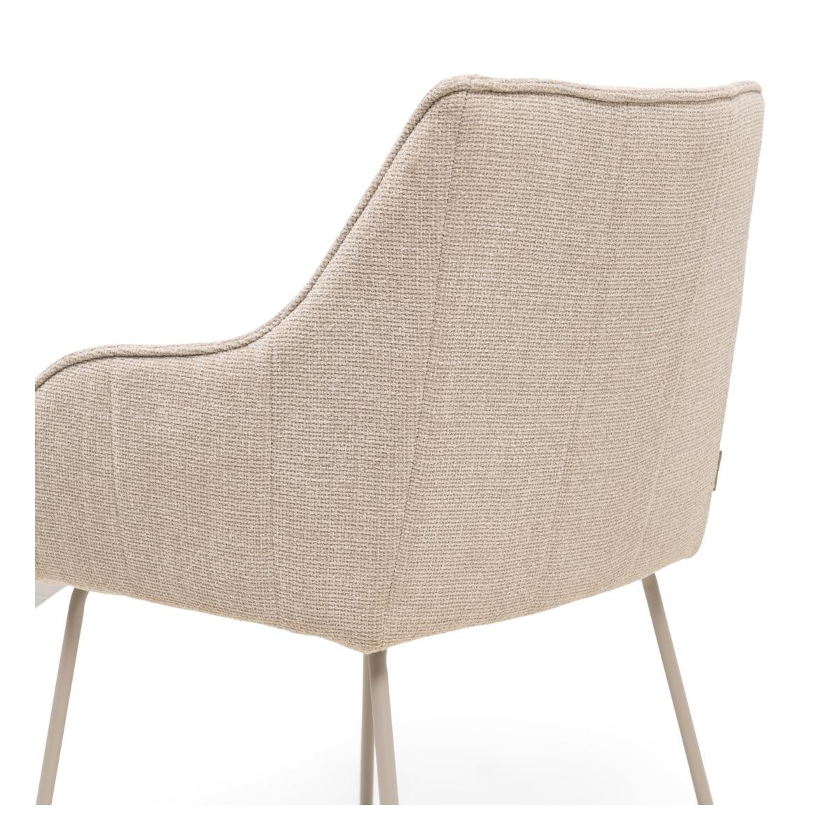 Pehme, naturaalses toonis kangas loob sooja ja kutsuva atmosfääri, samal ajal kui ergonoomiliselt kujundatud seljatugi ja käetoed pakuvad suurepärast istumismugavust ka pikemateks õhtusöökideks.